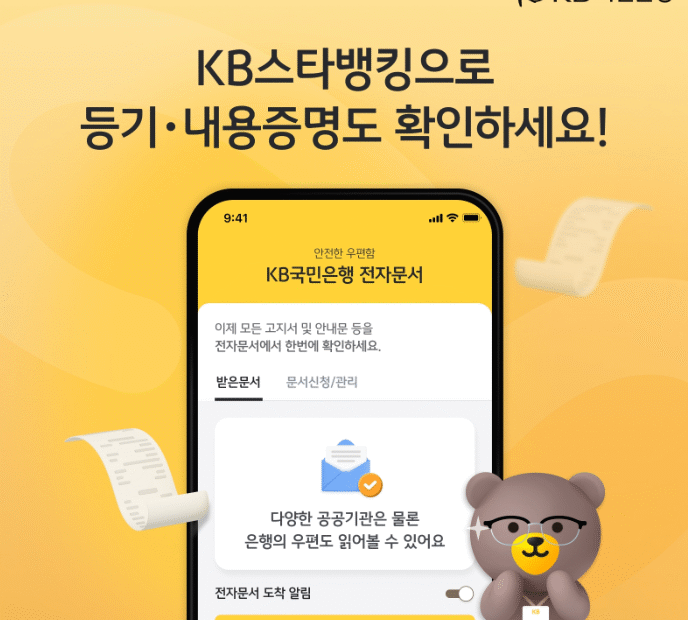 ❌놓치면 후회! 등기우편도 이제 KB스타뱅킹 앱에서 즉시 확인 [출처: 국민은행] KB스타뱅킹 전자문서 확인 가능 서비스가 도입되면서, 국민은행 고객들은 이제 더 이상 종이로 발송되는 등기우편이나 내용증명을 기다릴 필요가 없게 되었습니다.이 서비스는 과학기술정보통신부의 ICT 규제샌드박스를 통해 전자문서법상… 오늘부터 KB스타뱅킹 전자문서 확인 가능! 금융권 최초 혁신, 이제 등기우편도 앱에서 받는다